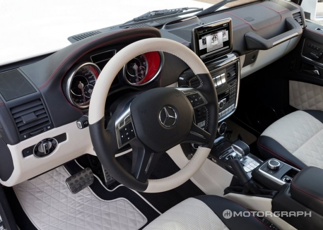 괴물스런 겉모습과 달리 실내는 무척 고급스럽다. 흙 묻은 신발을 신고 타기 꺼려질 정도다. 퀼팅 나파 가죽 시트가 적용됐고, 대시보드, 스티어링휠, 도어 패널 등도 전부 최고급 가죽으로 감싸졌다. 또 카본 패키지를 선택하면 실내의 플라스틱을 온통 카본파이버로 교체할 수 있다.