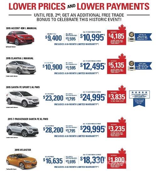 아반떼(현지명 엘란트라) 기본 트림은 기존 가격인 1594만원(1만7630캐나다달러)에서 464만원(29%) 할인돼 약 1130만원에 살 수 있다. 엑센트 수동변속기 모델은 995만원에 판매된다. 이는 기존 대비 28% 할인 된 것이다.