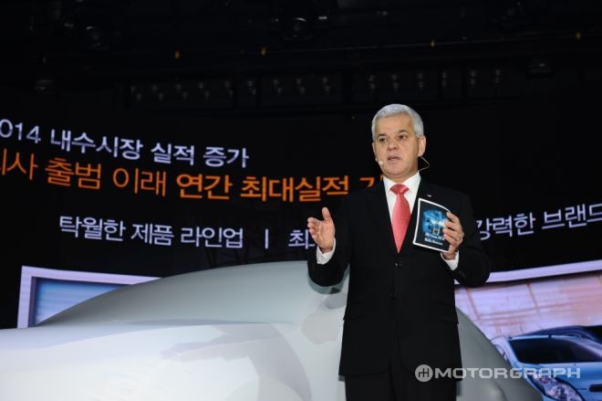 한국GM 세르지오 호샤 사장은 22일, 서울 서교동 '예스24 무브홀'에서 열린 크루즈 페이스리프트 미디어 컨퍼런스에서 작년 성과를 발표하며 올해 10종의 신차를 출시할 계획이라 밝혔다.