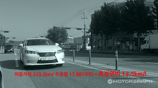 두 차량 모두 측정 연비가 공인연비에 미치지 못했다. 쏘나타 하이브리드는 공인연비(16.9km/l)의 60% 수준에 불과했고, ES300h는 공인 연비(16.3km/l)의 75% 수준이었다. 배터리가 충전된 상태에서 시내 구간에 들어서면 잠시 공인연비를 넘을 수 있었지만, 긴 시간 주행하면 어지간한 방법으론 공인연비를 넘을 수 없었다.