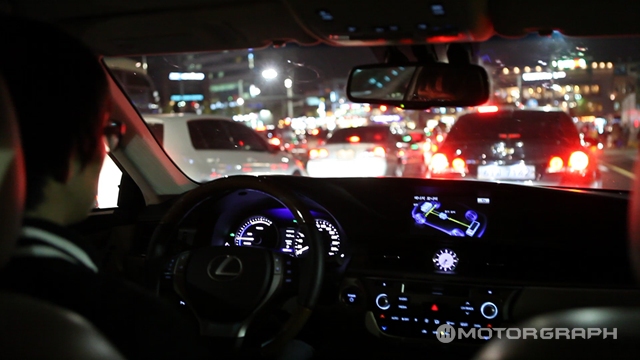 우선 교통량이 많은 강남에선 계속 정체와 지체가 반복됐다. 그런데 정체가 계속되는 동안 렉서스 ES300h는 연비가 거의 떨어지지 않고 오히려 향상되곤 했다. 전기모터만으로 주행하는 경우가 대부분이어서 연비는 어느덧 17km/l를 넘었다.