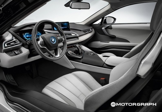 i8은 '2011 프랑크푸르트모터쇼'에서 공개된 콘셉트카의 디자인이 대부분 반영됐다. 카본 라이프 모듈과 알루미늄 드라이브 모듈을 결합시켜 만든 차체에 고전압 배터리를 가운데 장착해 무게 배분을 최적화시켰다. 여기에 버터플라이 도어를 사용했으며, 다소 복잡했던 테일램프 디자인도 꽤 살렸다. 특히, 조사각이 600m에 달하는 레이저 헤드램프가 적용되는 등 미래지향적인 첨단 디자인이 적용됐다.