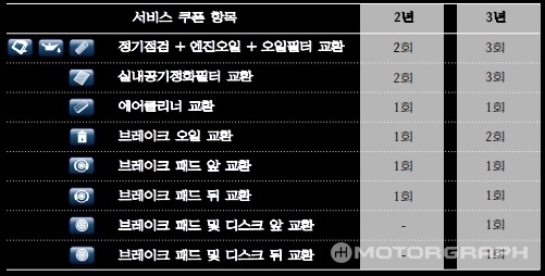 국내 공식 딜러를 통해 판매한 모든 차량을 대상으로 통합 서비스 패키지(ISP)를 통해 3년 또는 주행 10만km 중 먼저 도래 하는 시점까지 무상으로 정기 점검, 소모품 교환 및 일반 수리를 제공하고 있다.