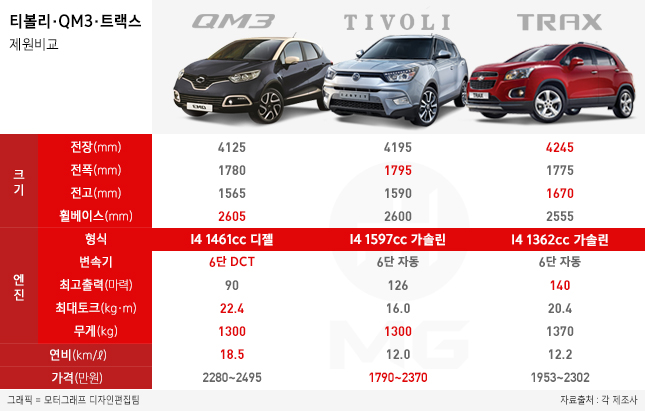 앞으로의 초소형 SUV 시장은 '디젤' 대결로 흘러갈 전망이다. QM3에 자극을 받은 트랙스와 티볼리가 각각 4월과 6월에 디젤 모델을 추가할 예정이다. 아직까지 국내 소비자들에게 'SUV=디젤'이라는 등식은 유효하기 때문이다.