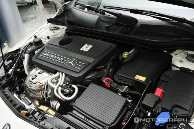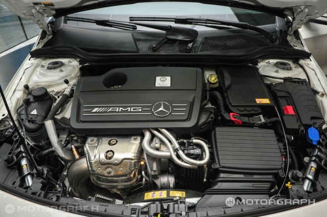메르세데스-벤츠 A45 AMG 4MATIC의 2.0리터 터보 엔진은 여느 AMG와 마찬가지로 한명의 작업자가 제작한다. 그리고 엔진에 자신의 이름을 새겨넣는다. 이 엔진은 메르세데스-AMG 설립 45주년을 기념해서 개발됐으며, 현존하는 가장 강력한 4기통 엔진이다.