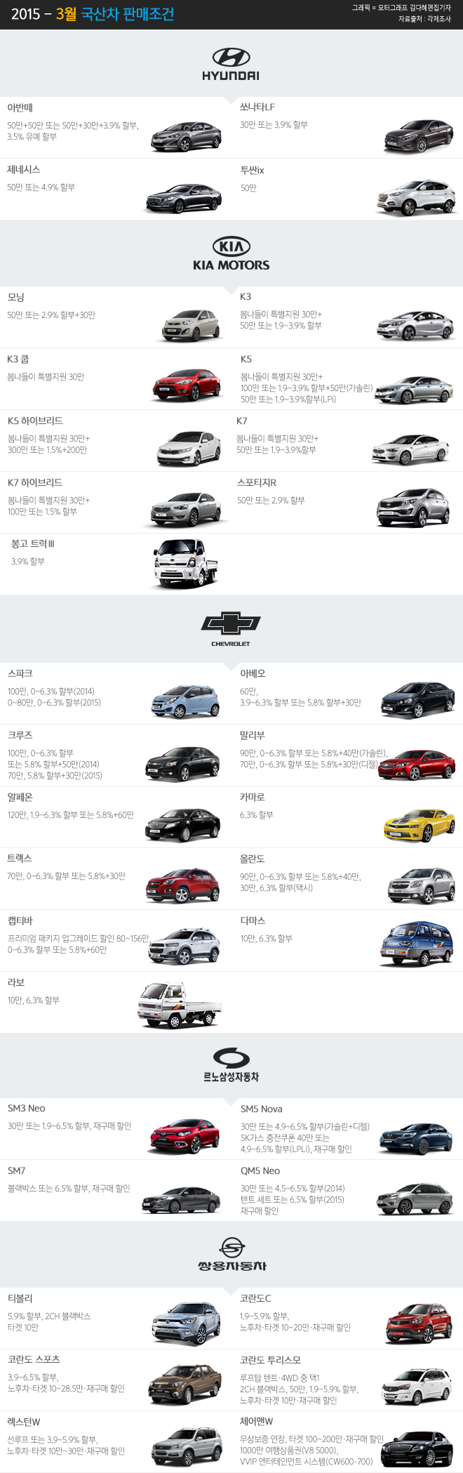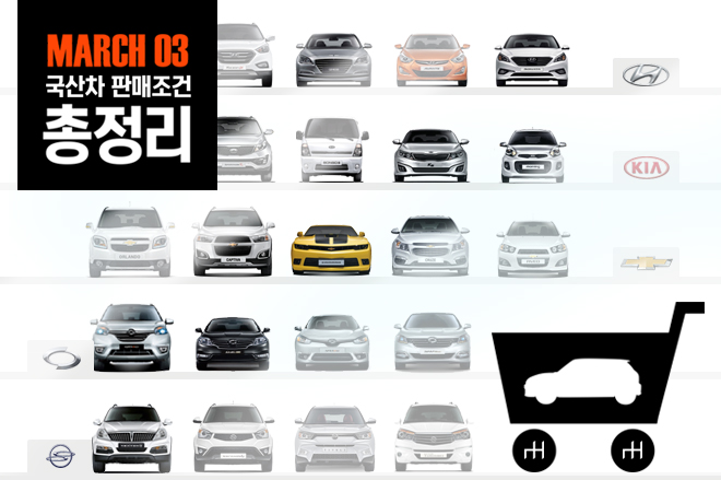 다음은 국산차 브랜드의 3월 판매조건이다. 더 자세한 사항은 각 브랜드 홈페이지를 통해 확인할 수 있다.