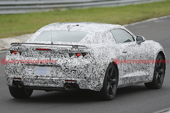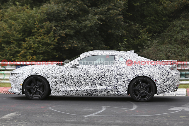 영상 끝부분엔 차체가 위장막으로 가려진 6세대 신형 카마로 시험주행차가 깜짝 등장한다. 신형 카마로의 헤드라이트와 라디에이터 그릴 등은 기존 모델의 얼굴을 계승하지만, 보다 날렵하고 공격적인 인상을 갖췄다. 또, 범퍼 하단부 공기흡입구는 더 넓어졌고, 더 낮아진 차체 디자인이 적용됐다.