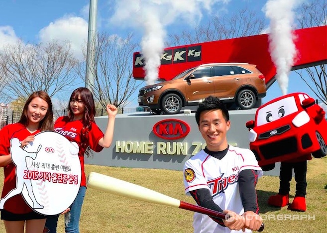 기아차는 ‘광주-기아 챔피언스 필드’ 우측 외야 잔디석에 홈런존을 마련하고 기간에 따라 올 뉴 쏘렌토, 신형 K5, 신형 스포티지 등의 차량을 전시할 예정이다. 특히, 바운드 없이 홈런존으로 홈런을 친 선수에게 전시된 차량을 증정하며, 홈런존으로 날아온 공을 주운 관중과 홈런을 친 선수를 맞춘 관중에게 내년 광주-기아 챔피언스 필드의 시즌권을 증정한다.