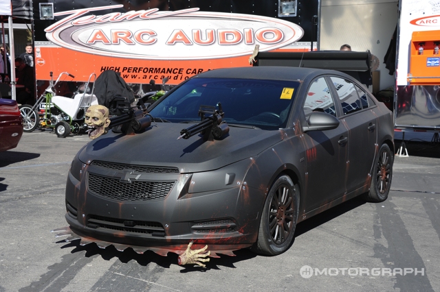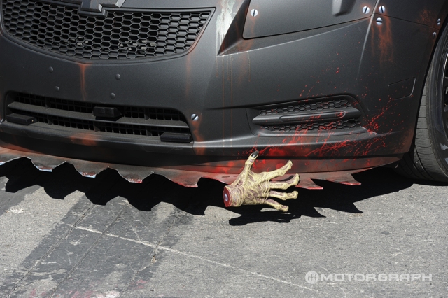 현대차는 이번 세마쇼에 싼타페와 벨로스터 좀비카를 전시해 화제를 모으고 있다. 이에 질세라 한 쉐보레 크루즈 오너는 자신의 차를 좀비카로 꾸며 전시했다.