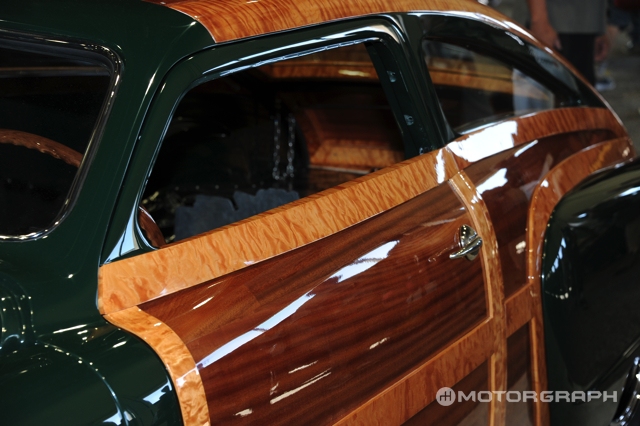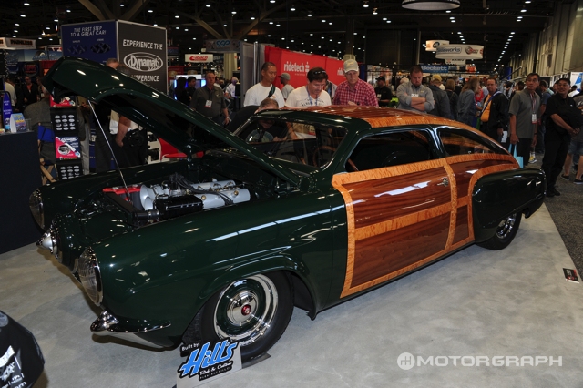 5일(현지시간)부터 나흘간 미국 네바다주 라스베이거스 컨벤션센터에서 열리는 ‘2013 세마쇼(SEMA)’에 미국의 마차 및 자동차 제조업체 스튜드베이커(Studebaker)의 1951년형 우디 패스트백(Woody Fastback)이 전시돼 많은 관람객을 이목이 집중됐다.