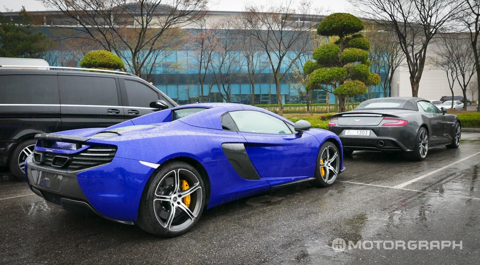 16일 맥라렌 650S 스파이더와 애스턴마틴 뱅퀴시 볼란테가 인천 서구 한국환경공단 배출가스 시험 건물 앞에 서 있었다. 특히 650S의 경우 4월2일 시험 접수 된 차가 보름이 넘게 비를 맞고 방치 돼 있어 배경을 놓고 궁금증이 더해진다.