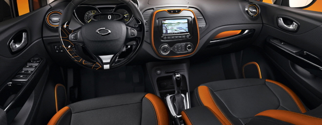 외관처럼 개성 넘치는 실내에는 독특한 모양의 계기반이 장착됐는데, 화려하고 선명해 시인성이 뛰어나다. 스티어링휠도 검은색 고광택 플라스틱과 가죽으로 마감해 세련됨을 강조했으며, 잡는 느낌도 좋다. 센터페시아는 단순한 디자인이지만, 공조장치 콘트롤을 제외한 내비게이션 및 엔터테인먼트 버튼을 터치스크린으로 통합했다. 또, 시트에 지퍼를 달아 따로 떼서 세탁할 수 있도록 했는데, 2015년형부터는 가죽시트도 추가됐다. 조수석에는 대형 슬라이딩 글러브박스인 '매직 드로어'가 적용됐는데, 12리터의 공간에 노트북이나 카메라, 화장품 등 다양한 물건을 넣을 수 있게 했다.