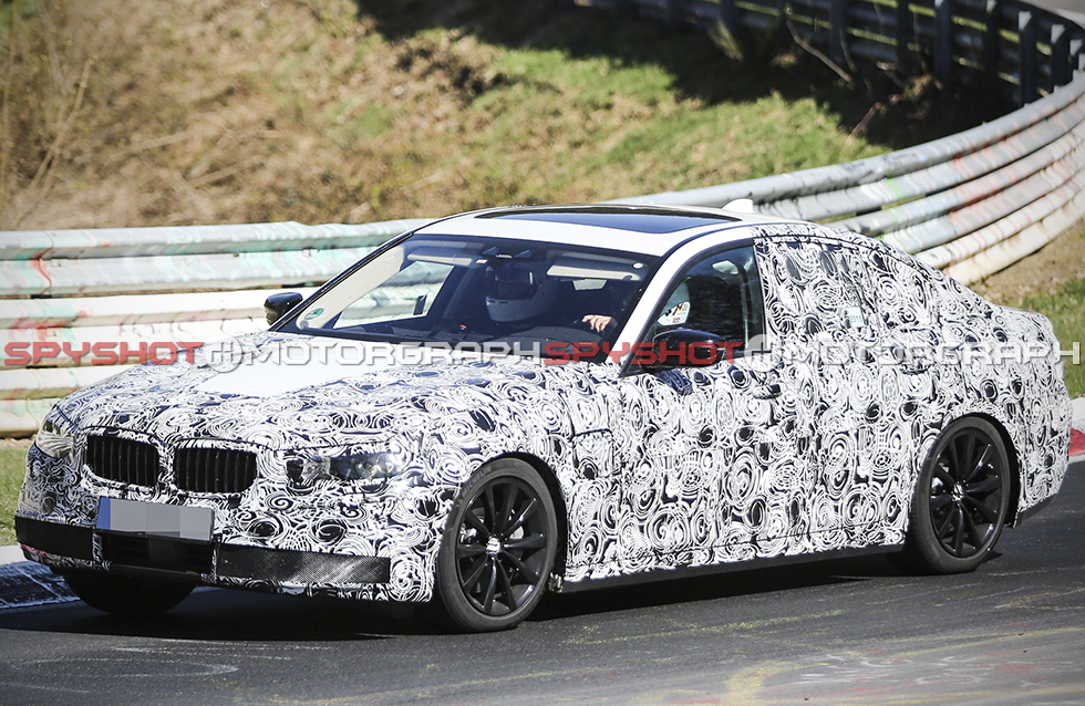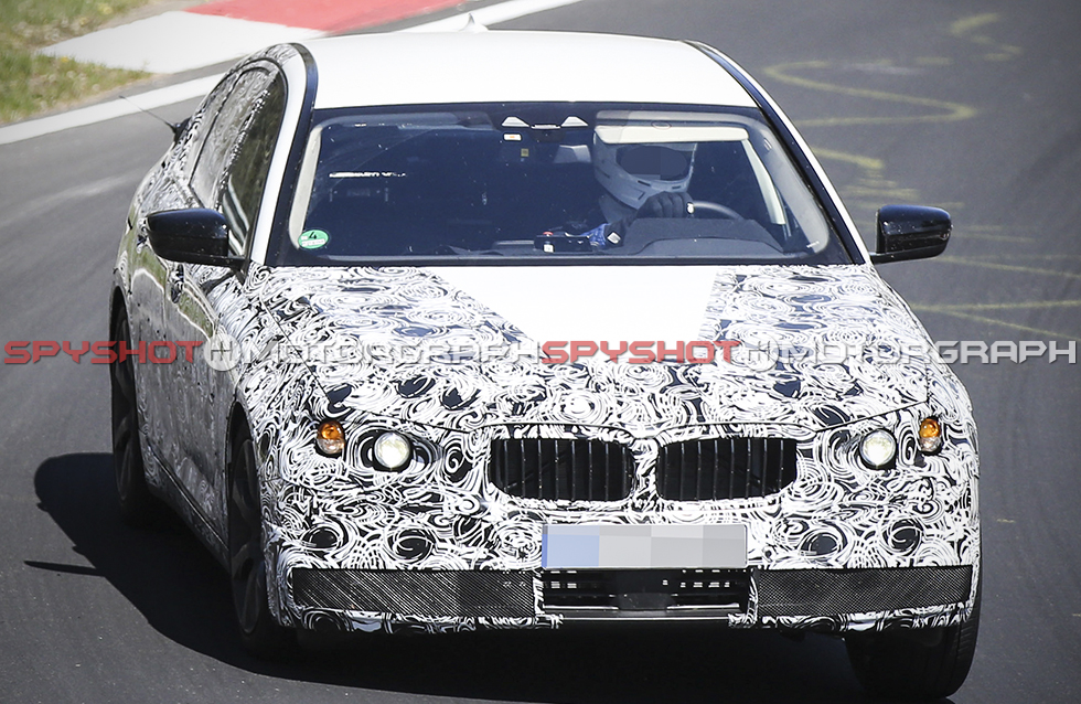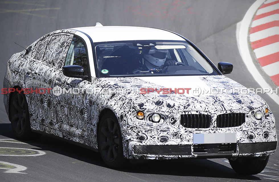 23일(현지시간), 독일 뉘르부르크링 서킷에서 본격적으로 주행 테스트를 시작한 BMW의 신형 5시리즈 시험주행차가 카메라에 잡혔다.