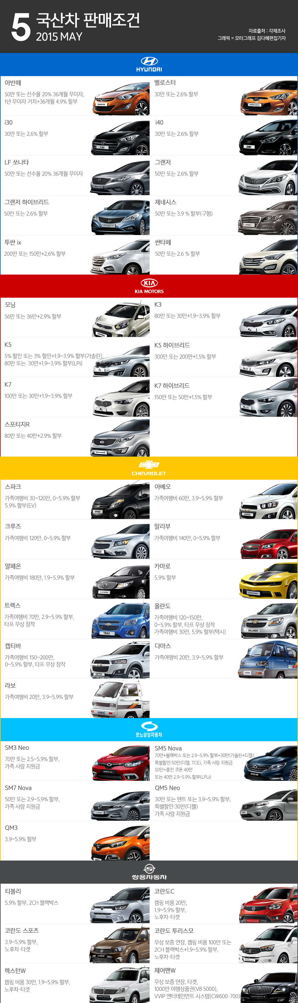 모터그래프는 4일, 국산차 브랜드들의 5월 판매 조건을 모아봤다.