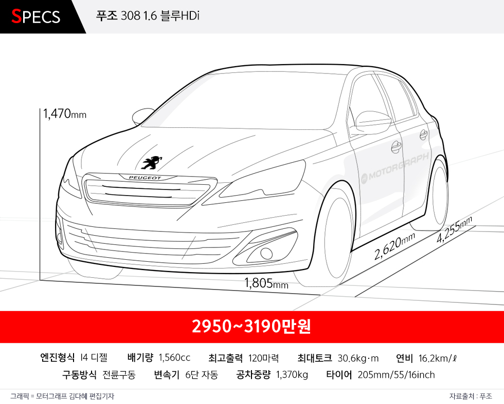 게다가 새로운 플랫폼과 변속기 교체, 유로6 기술, 사양 추가 등 다양한 가격 인상 요인이 있었음에도 이전 모델(3110만원)보다 저렴한 2950~3190만원에 출시돼 가격 경쟁력도 갖췄다. 신형 308은 그동안 과소평가된 푸조의 브랜드 이미지를 바꾸기에 충분한 모델이라는 생각이다.