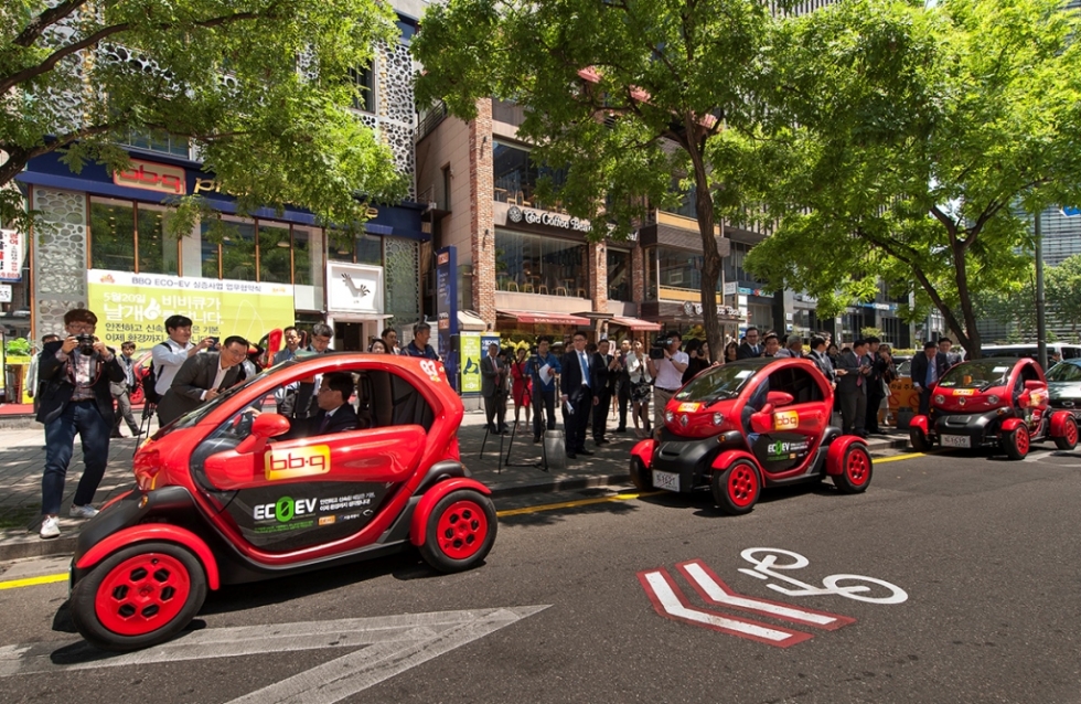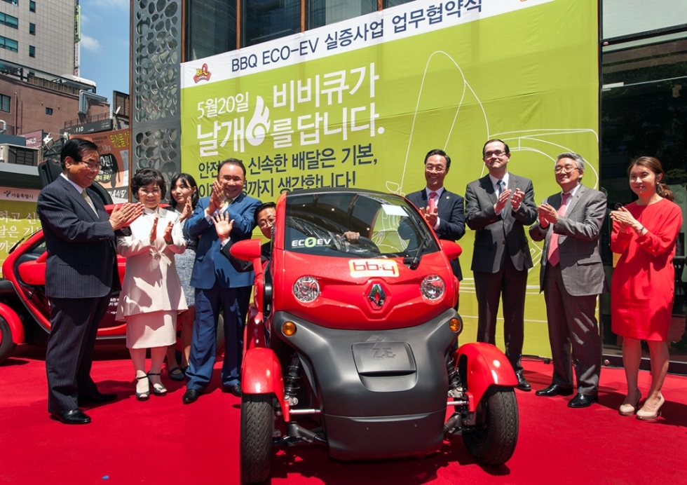 르노삼성차는 19일, 서울시·BBQ와 함께 전기차 실증사업을 위한 업무협약(이하 MOU)을 맺고 내달부터 초소형 전기차인 트위지(Twizy)의 국내시범운행을 시작한다고 19일 밝혔다.