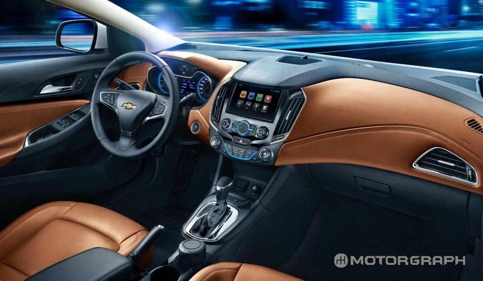 27일(현지시간), GM은 내달 24일 공개 예정인 쉐보레 신형 크루즈의 실내 이미지를 공개하고 스마트폰 연동 기능인 애플 카플레이와 구글 안드로이드 오토를 탑재한다고 밝혔다.