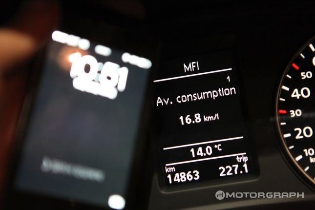 쏘나타 하이브리드는 표시연비 16.8km/l(1등급), 파사트 2.0 TDI는 표시연비 14.6km/l(2등급)로 쏘나타 하이브리드의 표시연비가 훨씬 우수하다. 하지만 실제 주행 결과 쏘나타 하이브리드는 표시연비에 턱없이 부족한 12.2km/l를 기록했다. 이에 반해 파사트는 18.9km/l로 표시연비를 훌쩍 넘었다.