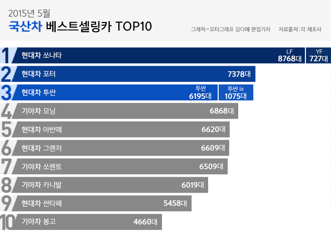 # 국산차 브랜드별 판매량…현대차 울고, 기아차 웃고