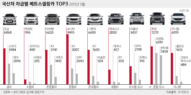 # 국산차 차급별 판매량-세단…몰락하는 세단 시장, 빈익빈 부익부 심화
