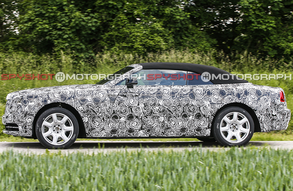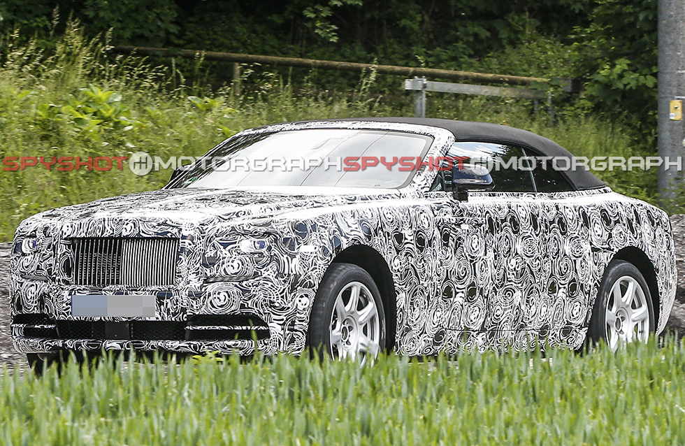 7일(현지시간), 유럽의 한적한 도로에서 주행테스트 중인 롤스로이스 컨버터블 모델 ‘던(Dawn)’의 시험주행차가 카메라에 잡혔다.