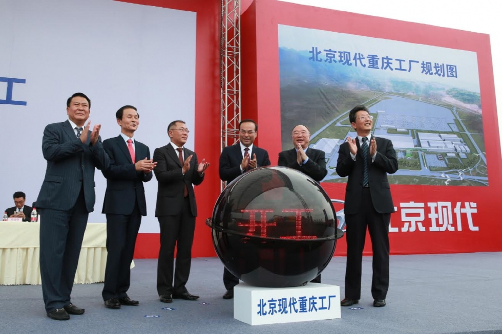 현대차는 23일, 중국 충칭시 량장신구 국가경제개발구역에서 현대차 정의선 부회장, 충칭시 쑨정차이 서기, 김장수 주중 대사, 황치판 충칭시장, 쉬허이 베이징기차 동사장을 비롯 현대차그룹 및 충칭시, 베이징기차 관계자 600여 명이 참석한 가운데 충칭공장 기공식을 가졌다고 밝혔다.