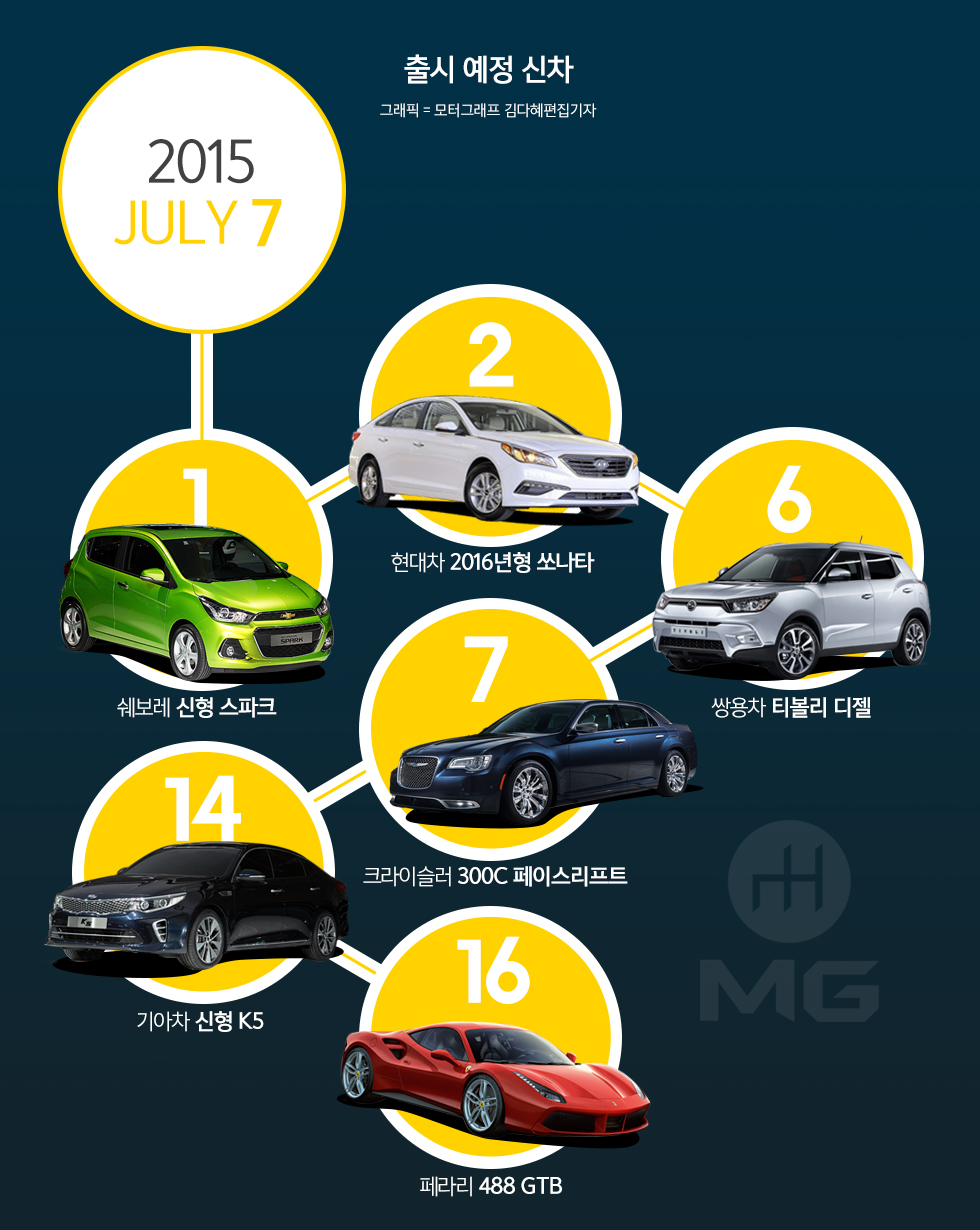 한국GM이 가장 먼저 포문을 열었다. 성능과 디자인이 개선된 쉐보레 신형 스파크를 국내 시장에 출시한다. 이에 현대차는 7개의 완성된 라인업을 갖춘 2016년형 쏘나타로 응수한다. 올해 국산 소형 SUV 돌풍을 이끈 쌍용차 티볼리도 디젤 엔진을 탑재한 모델로 라인업을 강화한다. 기아차도 주력 모델인 신형 K5를 출시해 하락한 세단 점유율을 끌어올릴 계획이다. 수입차의 경우, FCA코리아가 크라이슬러 300C 페이스리프트를 출시하며, FMK는 신형 스포츠카 488 GTB의 국내 론칭을 준비 중이다.