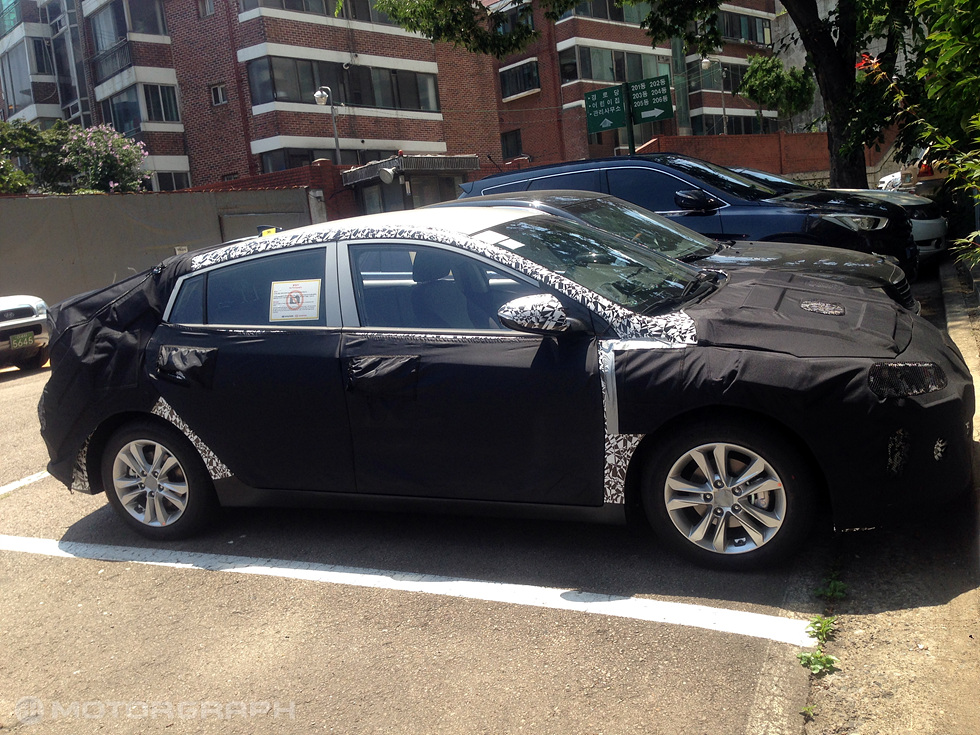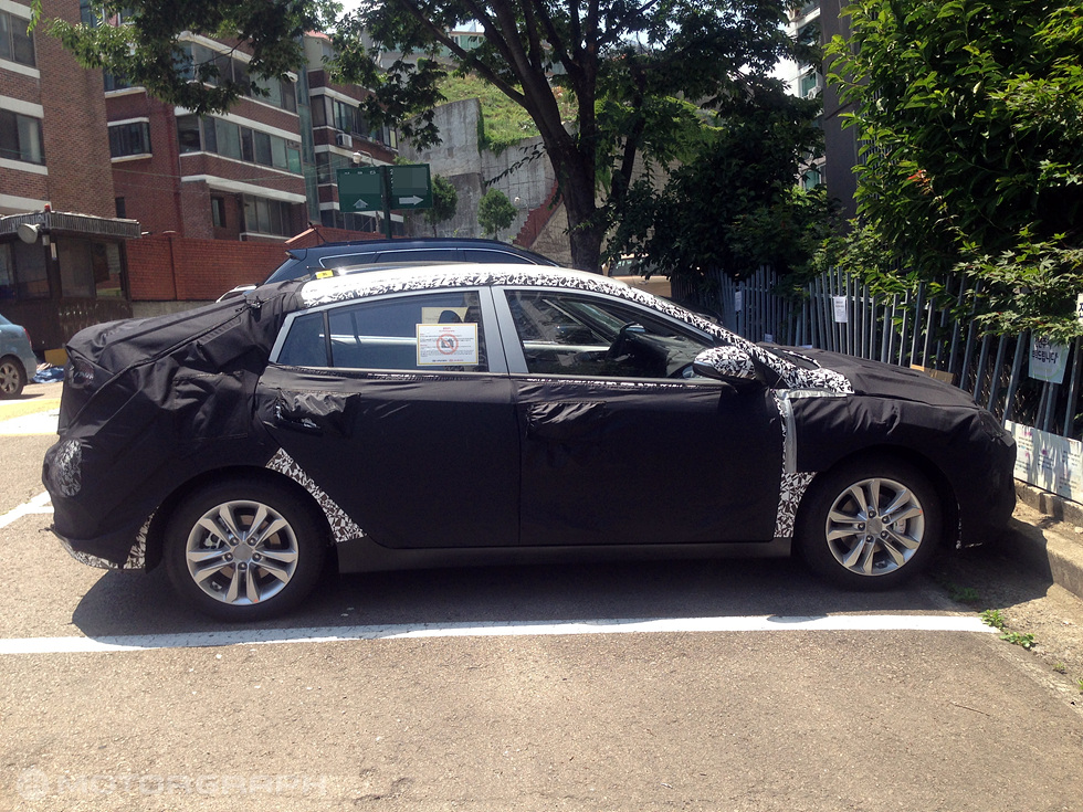 지난 4일 낮 12시경 서울시 사당 인근지역에 주차돼 있는 현대차 하이브리드 전용 모델(개발코드명 AE) 시험주행차가 카메라에 잡혔다.