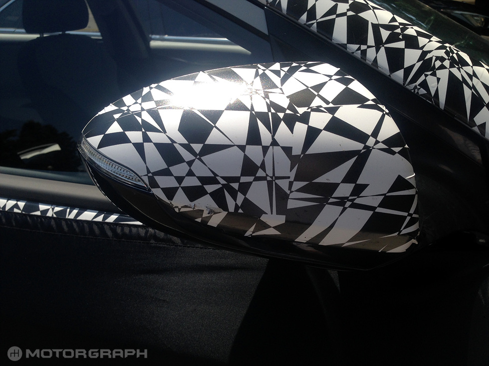 ▲ 현대차 하이브리드 전용 모델(개발코드명 AE) 시험주행차 사이드미러. 방향표시등이 장착됐다.