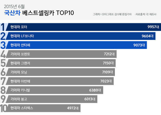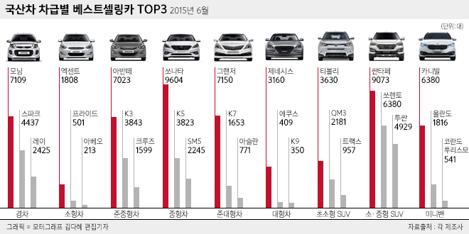 6월 국내 자동차 판매량은 15만9493대로 전년(13만9024대) 대비 14.7%나 증가했다. 현대차와 기아차 등 볼륨이 큰 브랜드의 판매량이 크게 늘어난 데다가, 티볼리를 앞세운 쌍용차와 4~5월 주춤했던 수입차가 부진을 떨쳐내고 높은 판매량을 기록했기 때문이다.