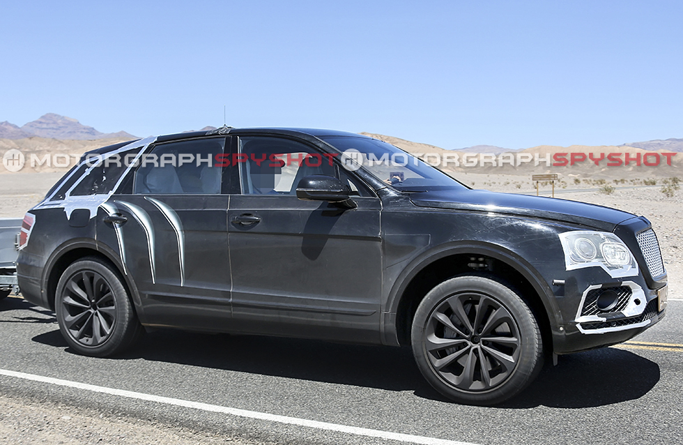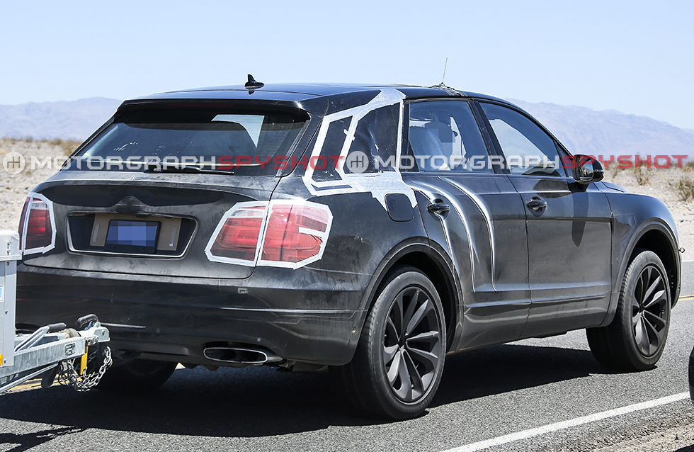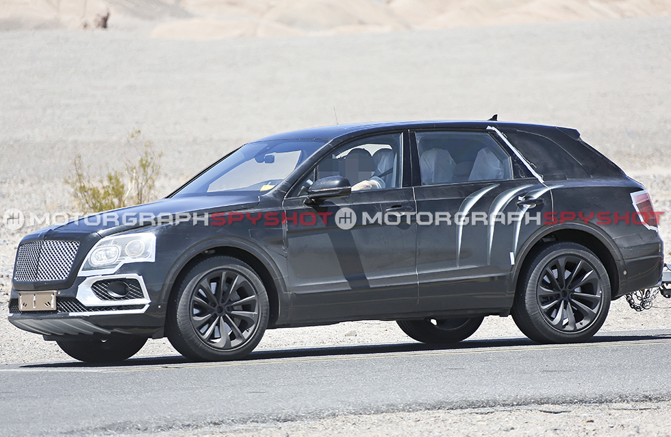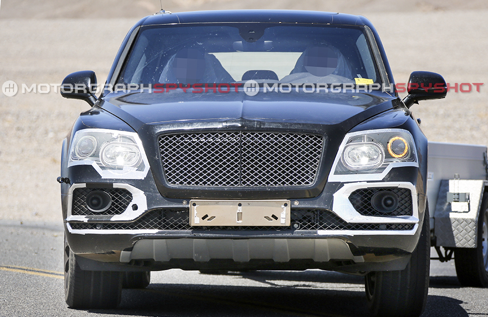 이 차는 차체 외부를 위장막으로 감싼채 부하 테스트(load test)를 위한 테스트용 트레일러를 견인하고 있다. 대략적인 외관이 드러난 상태로, 커다란 차체에 벤틀리 특유의 고급스러운 디자인이 곳곳에 적용됐다.