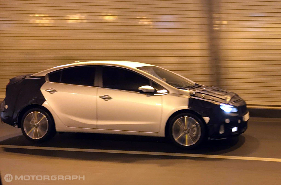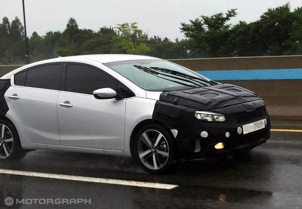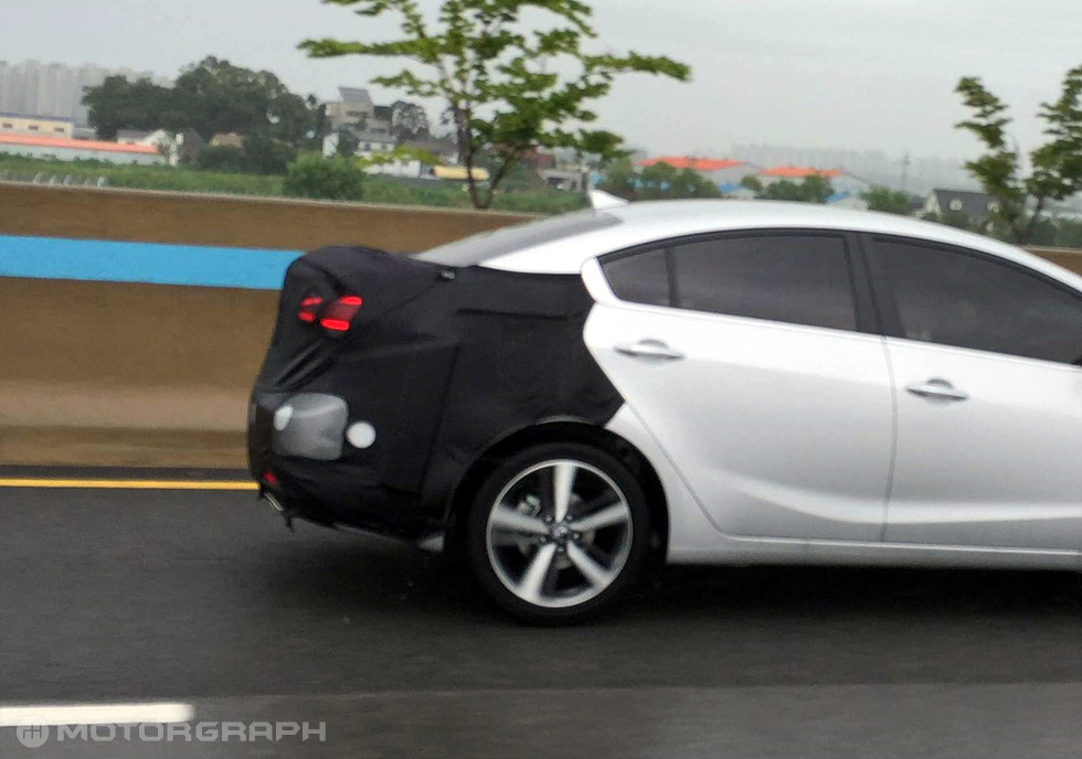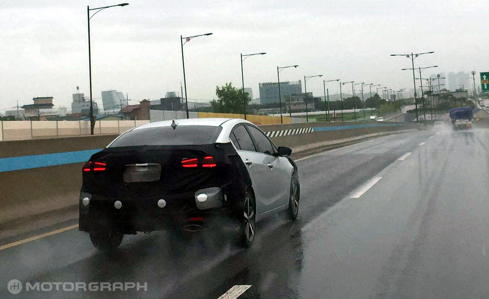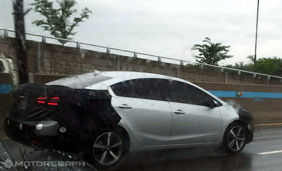 지난 24일, 서울 방향 제2자유로에서 기아차 K3 페이스리프트 모델로 추정되는 시험주행차가 모습을 드러냈다. 비 오는 날씨 속에서 카메라를 의식했는지 이 시험주행차는 속도를 높여 점점 멀리 앞서갔다.