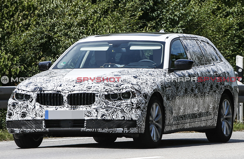4일(현지시간), 유럽의 한적한 도로에서 BMW의 신형 5시리즈 시험주행차가 카메라에 잡혔다. 시험주행차는 왜건 모델로 전면부 디자인과 전체적인 실루엣 등을 통해 내년 공개될 차세대 5시리즈 세단의 모습을 짐작해 볼 수 있다. 또, 촬영된 모델은 5시리즈 라인업에 새롭게 추가되는 플러그인 하이브리드 모델이다.