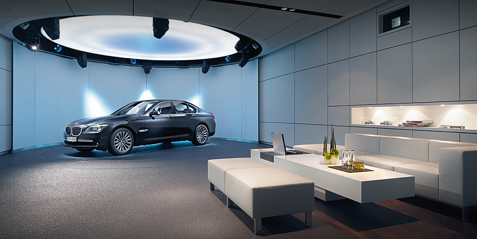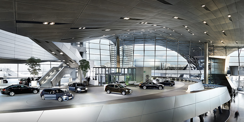 반짝이는 새 BMW들이 마치 모터쇼장의 콘셉트카처럼 턴테이블 위에서 돌고 있고 그 위로 스포트라이트 조명이 내리쬔다. 차를 구입한 주인들이 오면 그 자리에서 BMW 직원들이 새 차에 대해 설명하고 함께 점검을 한다. 모든 과정을 마치면 구매자는 스포트라이트를 받으며 시동을 걸고 실내의 비탈 도로를 통해 유유히 건물을 빠져나가도록 설계돼 있다.