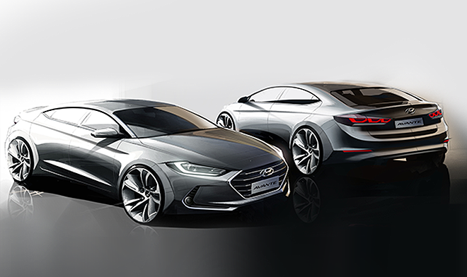 현대차가 20일, SNS 사이트를 통해 내달 출시 예정인 신형 아반떼의 디자인 스케치 7장을 공개했다. 실물 사진은 아니지만, 최근 공개된 렌더링과 함께 신형 아반떼의 전체적인 모습을 예측할 수 있는 여러 각도의 이미지로 구성됐다.