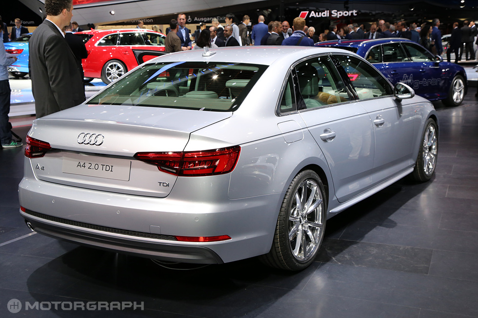 신형 A4는 2007년 이후 8년 여만에 선보이는 풀체인지 모델로, 직선 디자인이 적용돼 남성적인 느낌이 강조됐고, 상위 모델에 적용되는 다양한 안전 및 편의사양이 추가됐다.