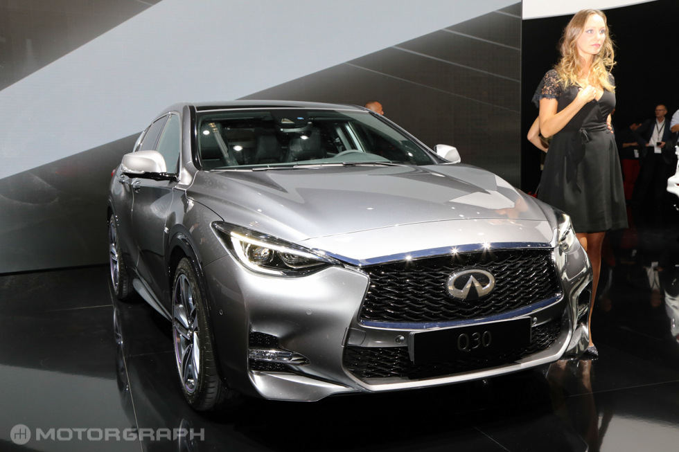 인피니티는 15일(현지시간), 독일 프랑크푸르트 메세에서 열린 ‘2015 프랑크푸르트 모터쇼’를 통해 브랜드 최초의 소형 해치백 모델인 Q30을 세계 최초로 공개했다.