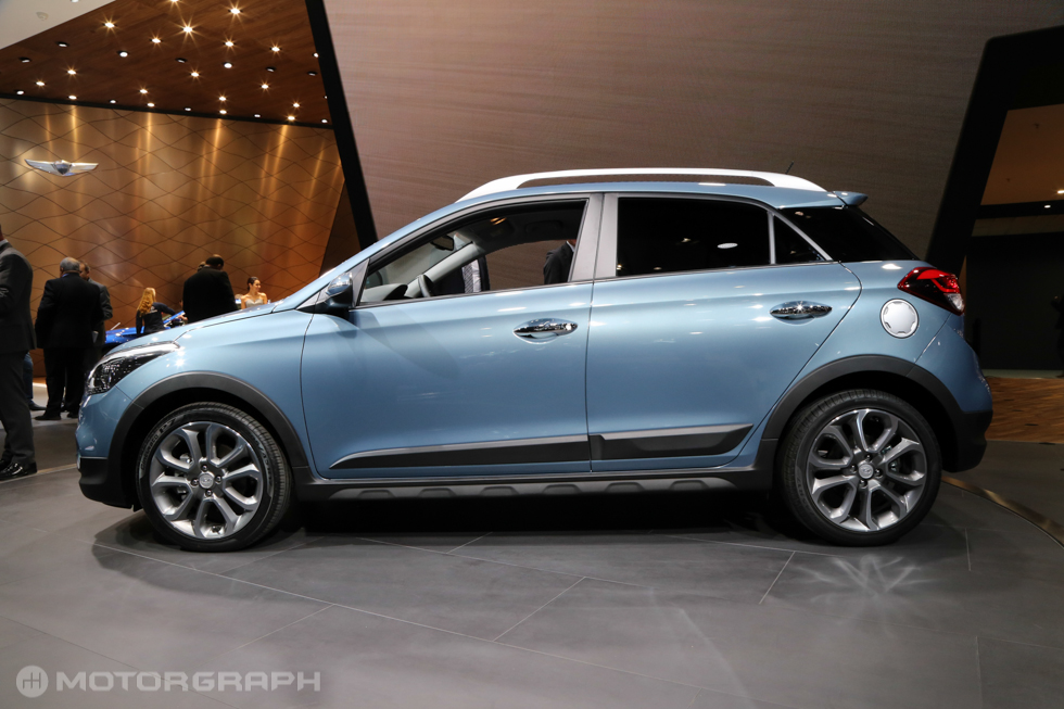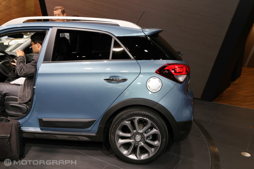 이 차는 i20 5도어보다 전고를 55mm 높이고, 17인치 알로이 휠을 비롯해 새 디자인의 라디에이터 그릴, 스키드 플레이트 등을 장착해 보다 강하고 스포티한 느낌으로 디자인됐다. 각지고 다부진 현대차 ix25와 달리 유선형 디자인이 곳곳에 적용됐으며, 후면부는 날렵한 라인이 강조된 테일램프와 동그란 모양의 반사판으로 꾸며졌다.