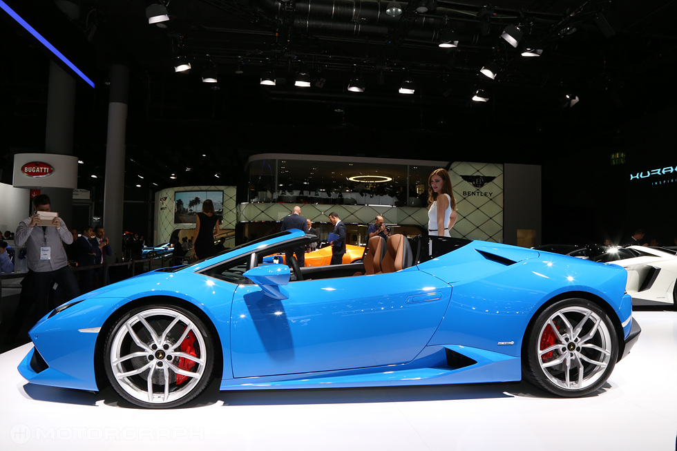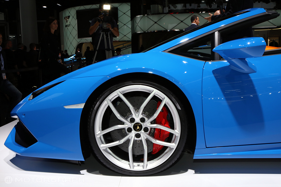 람보르기니는 15일(현지시간), 독일 프랑크푸르트 메세에서 열린 ‘2015 프랑크푸르트 모터쇼’를 통해 우라칸의 오픈카 버전인 ‘우라칸 LP610-4 스파이더’를 공개했다.