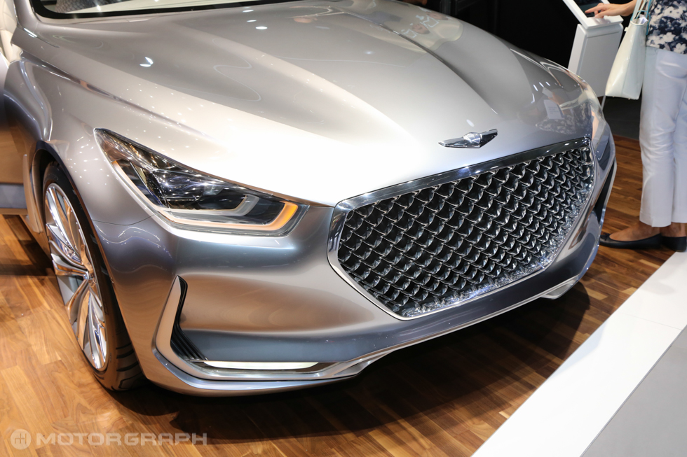 디자인은 현대차의 특징이 고스란히 담겼다. 현대차의 플루이딕 스컬프처 2.0 디자인 철학 자체가 미국 캘리포니아 디자인 센터의 영향력이 컸다. 보닛과 트렁크에는 제네시스의 엠블럼이 붙었다. 비전 G라는게 비전 제네시스(Genesis)를 말하는 것이라고 해석해도 크게 무리없겠다. 물론 세부적인 디자인도 제네시스의 것을 발전시킨 것 같다.