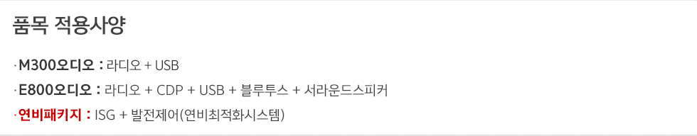 럭셔리 모델은 16인치 알루미늄 휠, 프로젝션 헤드램프, LED주간전조등, 4.6인치 칼라 TFT LCD클러스터, 후방카메라와 LCD룸미러, 전·후방 주차보조시스템, 조수석 에어백 등이 기본으로 적용됐고, 내비게이션, 차선이탈경보장치, ISG와 발전제어 시스템이 포함된 연비패키지 등으로 구성된 선택 품목을 더할 수 있다.