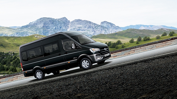 파워트레인은 유로6를 만족하는 2.5리터 A2 CRDi 디젤 엔진이 탑재돼 최고출력 170마력, 최대토크 43.0kg.m의 성능을 발휘하며, 속도제한장치로 인해 최고속도는 시속 110km로 제한된다. 또, 변속기는 6단 수동변속기만 지원한다. 이에 따라, 이 차를 운전하기 위해서는 14, 15인승 모델의 경우 1종 보통면허가 필요하며, 16인승 모델은 1종 대형면허가 필요하다.