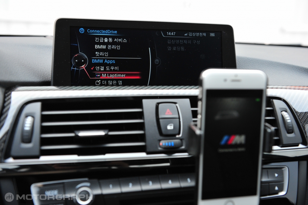 이름은 M 랩타이머지만 모든 BMW에서 사용할 수 있다. M의 전유물은 아니다. 하지만, 커넥티드 드라이브(Connected Drive)를 지원하는 최신 모델이어야 한다. 또 아이폰만 가능하다. 센터콘솔의 스냅-인 어댑터(Snap-In Adapter)나 USB로 아이폰을 연결하기만 하면 된다.