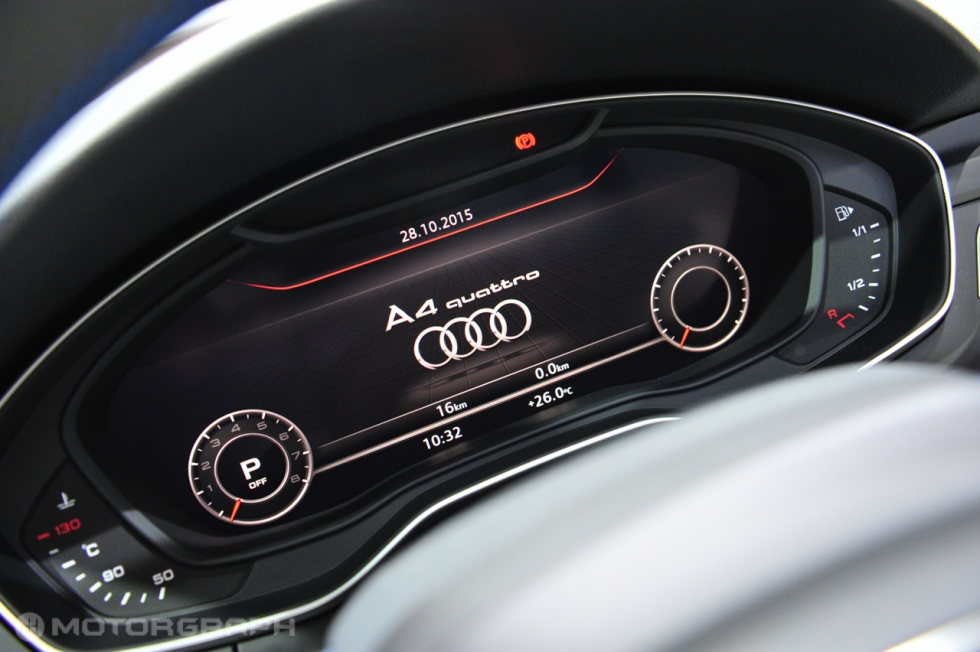▲ TT, R8 등에 적용된 디지털 인스트루먼트 패널도 A4에 탑재됐다. 폭스바겐그룹이 최근 신차에 동일하게 적용하고 있는 시스템이다. 12.3인치 모니터에는 내비게이션을 비롯해 다양한 정보가 표시된다. 또 자율성이 높아 원하는 정보를 선택해 볼 수 있는 것도 특징이다. (사진=도쿄 김상영 기자)
