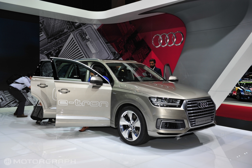▲ Q7 e-트론 콰트로도 메인 무대에 올랐다. 지난 3월 제네바모터쇼를 통해 세계 최초로 공개된 Q7 e-트론 콰트로는 디젤 플러그인 하이브리드 시스템이 탑재됐다. 아우디는 SUV 최초의 디젤 플러그인 하이브리드라고 설명했다. e-트론 콰트로가 아니더라도, 신형 Q7은 기대가 큰 신차다. (사진=도쿄 김상영 기자)