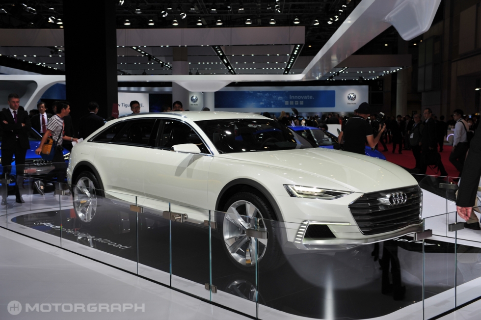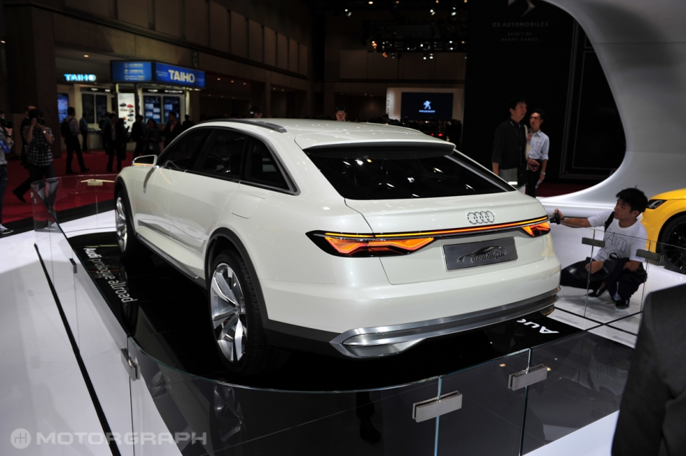 ▲ 아우디는 최근 모터쇼에서 아우디의 방향성을 제시하는 프롤로그 콘셉트를 연이어 선보이고 있다. 도쿄 모터쇼에 전시된 프롤로그 올로드를 통해 아우디의 왜건과 올로드 모델의 디자인 특징을 살펴 볼 수 있다. 아우디는 아반떼를 닮아가고 있다. (사진=도쿄 김상영 기자)