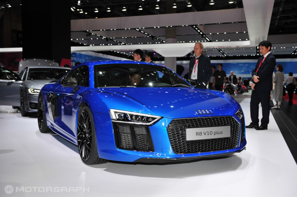 ▲ R8 중에서 가장 강력한 성능을 발휘하는 R8 V10 플러스도 전시됐다. 아우디도 메르세데스-AMG처럼 고성능 모델을 세분화하는 작업을 진행 중이다. 뒤에 플러스가 붙는 모델은 주행 성능이 일반 모델에 비해 한층 강화됐다. (사진=도쿄 김상영 기자)
