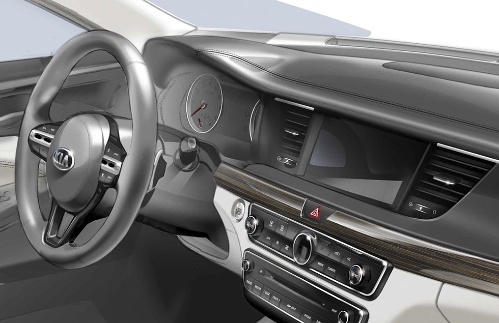 기아차는 12일, 신형 K7(개발코드명 YG)의 내외장 렌더링 이미지를 공개했다.