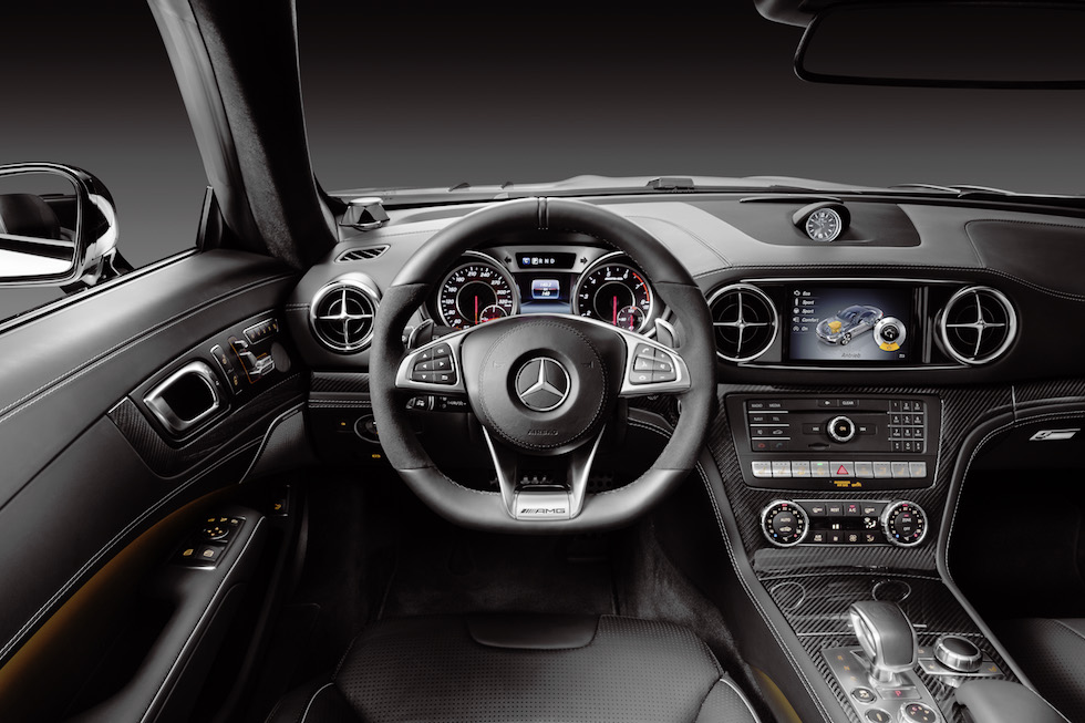 SL 페이스리프트는 AMG GT의 디자인 특징이 크게 반영됐다. 헤드램프, 라디에이터 그릴, 범퍼 등 앞모습을 위주로 외관 디자인이 변경됐다. 실내 디자인은 스티어링휠, 기어노브 등을 중심으로 디자인이 소소하게 변경됐고, 소재나 마감 등이 더욱 향상됐다.