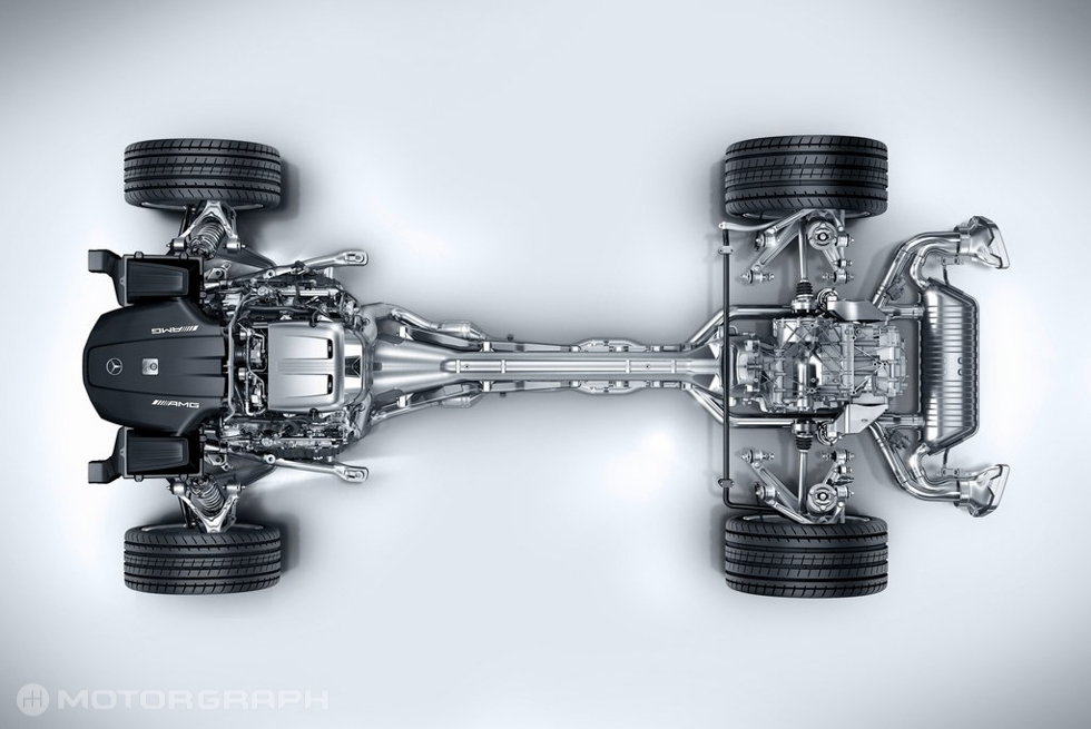낮은 무게 중심과 넓은 차체, 앞뒤 47:53의 무게 배분 등도 AMG GT의 정교한 핸들링을 돕는다. 메르세데스-AMG는 차체 밸런스를 위해 SLS AMG와 마찬가지로 변속기를 리어 액슬에 붙이기도 했다.